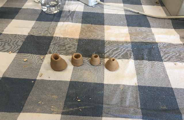 上午进行的是拉坯体验活动,蓝岛创客空间候俊老师介绍了制作的方法和重点。拉坯主要是利用拉坯机产生的离心运动,在旋转过程中,对含水半固化状态的泥料按照设计构思拉伸成型。制作过程中要注意手要稳,定好中心,不跑偏,抚底防开裂,做出形状后整体拔高,最后整理作品的细节。参加活动的教职工及其子女都热情高涨地投入到拉坯的制作中。初次制作的过程中出现了坍塌、开裂、中心跑偏等情况,但是没有人放弃,特别是小朋友们都耐心的一遍遍重头做起,不断总结失败原因,调整自己的制作过程,最终获得自己心中满意的陶艺作品。