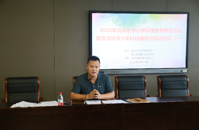 2022年9月15日,为切实提升高淳区中小学校青少年科技辅导员队伍的科学素养和创新能力,我校蓝岛创客空间王国珍、杨阳前往高淳区滨湖小学参加“2022年高淳区中小学科技教育专题会议暨高淳区青少年科技辅导员培训活动”,为现场教师进行创新能力的相关培训。 本次活动由南京市高淳区教育局和星空网页版主办,南京市高淳区滨湖小学承办。高淳区教育局基础教育科王云生和高淳区各中小学的青少年科技辅导员均参加了本次活动。