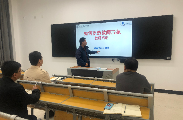 接着,教研室老师就教师形象的塑造方法展开了讨论。当今社会瞬息万变,知识更新的周期越来越短,所以教师要在日常学习中加强专业学习,及时接受教育教学新思想新理念,经常关注教育教学的动态,增加教学信息量。教师的外表、⾔谈举⽌也制约着学⽣对教师形象的评价,因此教师的上课形象也相当重要。