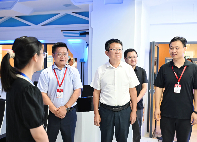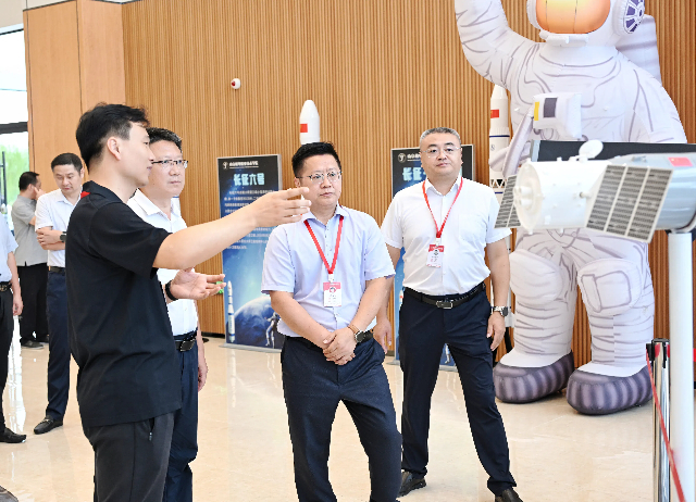 随后,周庆礼陪同顾元刚等人前往弘德楼一楼参观航天主题科普展馆。在这里,蓝岛创客空间主任王国珍为参观者介绍了中国航天的辉煌历程,让参观者领略了浩瀚宇宙的神秘与壮丽。信息工程系王玥老师在卫星测控中心分享了卫星进入太空以后的变轨、对接空间站等流程。顶楼的卫星地面接收站让参观者看到了每次卫星经过学校上空的数据和太空中拍摄的地面景象,激发了大家对航天事业的无限憧憬和敬意。