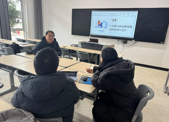 在随后的讨论环节,教师们积极发言,围绕AI技术融入课程的具体方式、教学实践中可能遇到的问题及解决方案等展开了热烈讨论。杨阳认为,在课程设计中应充分考虑学生的专业特点和实际需求,针对性地引入AI技术,例如在编程课程中利用AI辅助教学工具,帮助学生更好地理解和掌握编程知识。朱妍焘则提出,要加强教师的AI技术培训,提升教师的数字化教学能力,确保教师能够熟练运用AI技术开展教学活动。此外,教师们还就如何整合教学资源、如何评估AI技术融入教学后的效果等问题交换了意见。