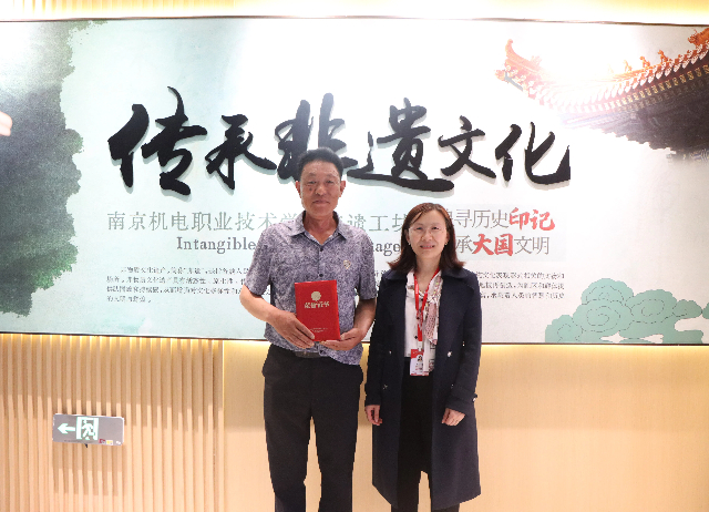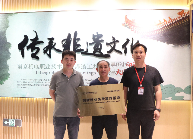 活动的最后,学校科研处处长李木香为木工非遗大师夏元安、夏磊及板鹞风筝非遗大师何金泉、吴锦华、沈建华颁发非遗导师聘书;蓝岛创客空间、信息工程系主任王国珍颁发扬州精细木作工坊创新创业实践教育基地和何金泉板鹞风筝创新创业实践教育基地铜牌。