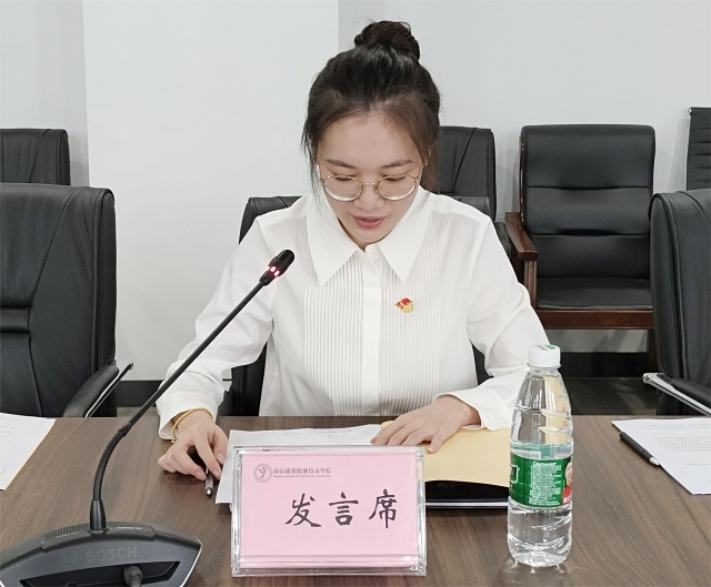 接下来信息工程系辅导员沈歆岩作为新进教职工代表发言,她感恩满满地说到进入机电后学校领导、系部领导和老师们对她的关心与指导,同时也向学校郑重表态,作为一名辅导员将在未来的工作中,充分发挥自己的能力与智慧,有耐心地将爱撒入学生的心田。