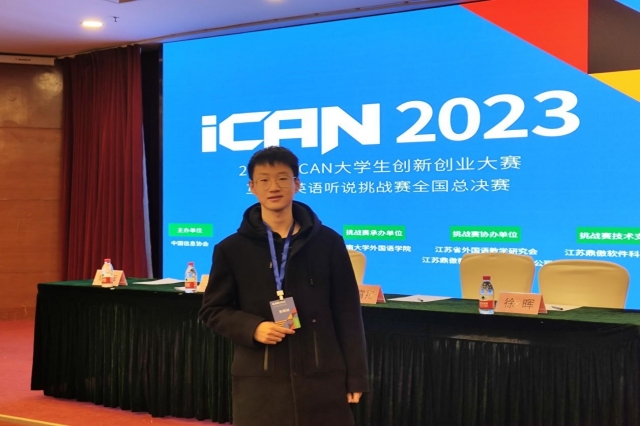 据统计,全国共30个省、市、自治区的820所高校参与本次大赛。其中本科组有100773人报名参赛,专科组31192人报名参赛。在涵盖近千所高校、参赛选手达十余万人的全国性大赛中,我校学生崔洪硕同学经过校赛、省赛、国赛挑战赛的层层选拔获得参加全国总决赛资格,于11月19日与来自专本科不同高校的182名入围国赛的选手们汇集东南大学九龙湖校区,参与全国2023年iCAN大学生创新创业大赛互联网英语听说挑战赛全国总决赛奖项的争夺。