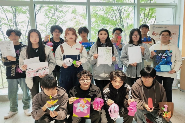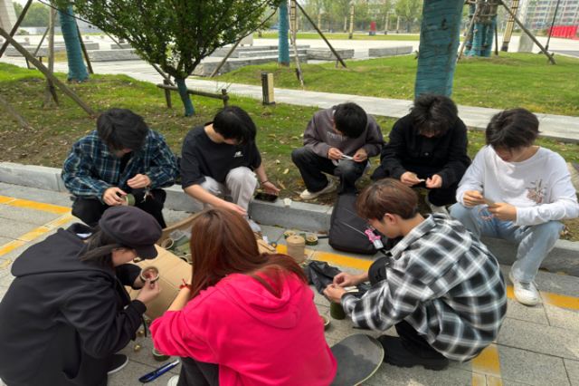 以诗词画卷为依,呈多彩校园。人文社科系环境艺术设计专业的同学们带领着大家一起集思广益,合理规划设计,将这些精美的手工艺品放置在校园的各个角落,共同构筑了一幅栩栩如生的校园文化画卷。飞花令灯笼、竹筒风铃、彩色飞花令牌等作品,如同春天的花朵般点缀着校园,为校园的每个角落带来了生机与活力。随着微风轻拂,竹筒风铃悦耳的声音,飞花令灯笼摇曳的身姿,飞花令牌舞动的诗意,无一不在诉说着诗词的韵味和魅力。每一处风景都如同一首优美的诗篇,让人流连忘返,沉醉其中。