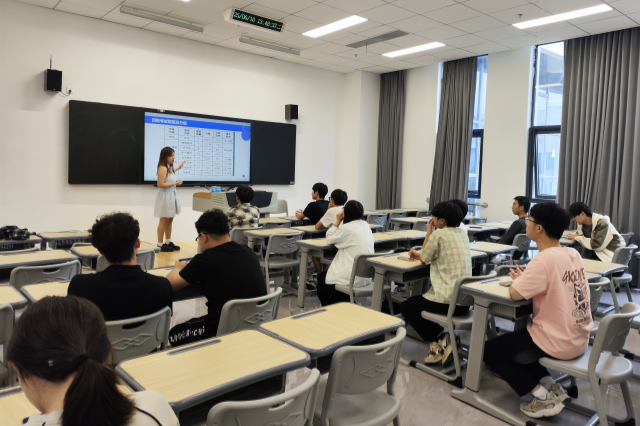 针对三级B/四级考试,杜灿灿同学分模块梳理考点:听力部分标注“建议类句型(Why not...)”高频出题点,阅读板块演示“关键词定位法”,写作环节发放自制“万能句型手卡”(含“It's undeniable that...”等模板),翻译部分汇总“二十四节气”等固定译法。她边讲解边投影近三年真题规律,着重强调“四级写作需在40分钟内完成三段式结构”,台下学生纷纷用手机拍摄课件重点。
