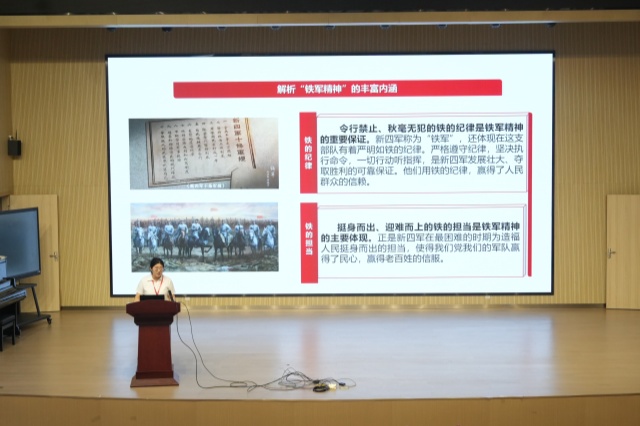 话剧展演结束后,星空网页版马克思主义学院的毛莉老师以“讲好新四军故事,凝聚奋进力量”为主题,为两校师生呈现了一堂别开生面的思政课。毛莉老师以新四军话剧内容为切入点,结合多媒体资源与互动讨论,引导学生从历史视角思考当代青年的责任,课堂气氛活跃,学生参与度高。