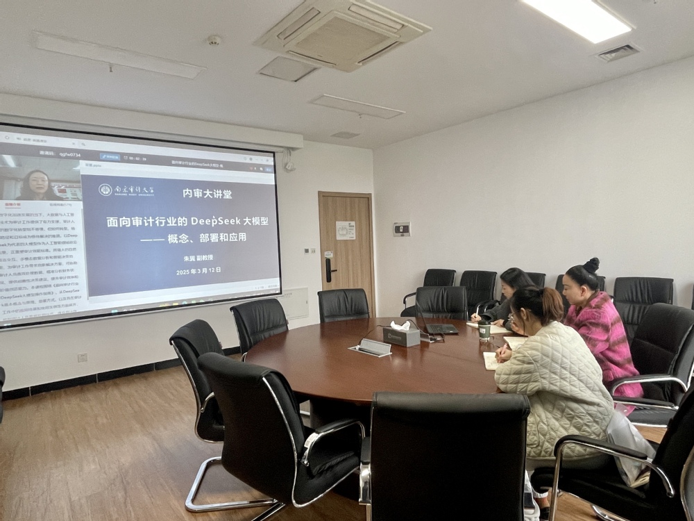 2025年3月12日,审计处参加由南京审计大学组织的关于《面向审计行业的DeepSeek大模型——概念、部署与应用》的线上培训主讲人为朱翼副教授(双创博士,联合国审计师)。