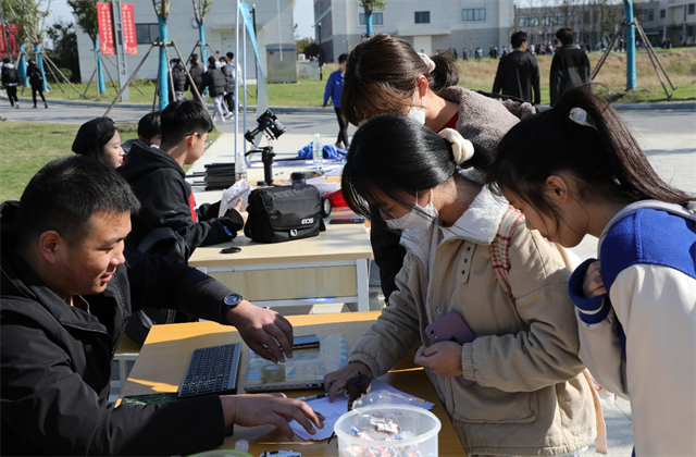 社长周志成一直守在摊位并介绍社团的情况,在新生填申请表时详细介绍支教社团的三个部门,新生们会根据自身情况填写申请表。很多人询问是不是来了就可以当老师?周志成社长强调:要看同学们能力水平,并能带给孩子一些什么东西。支教社团是一个非常严谨的社团。在活动方面,周志成社长不仅介绍了支教社举办过的活动,同时还宣布即将与高淳希望小学对接的好消息。