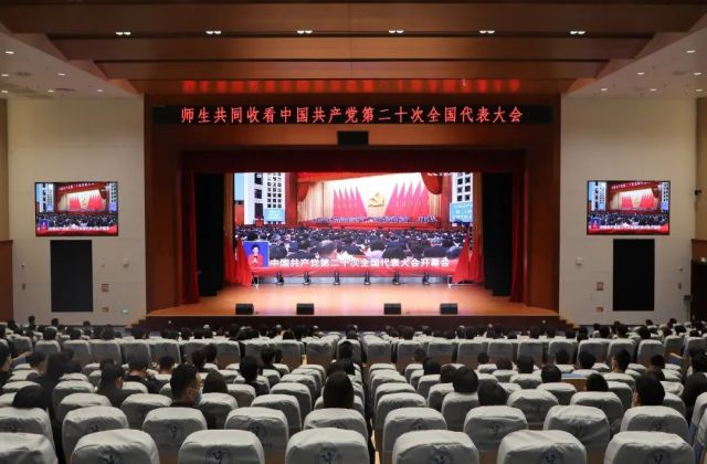 开幕会历时2个小时,习近平总书记的报告激荡人心、催人奋进。全场师生全程认真聆听、深入学习领会。当习近平总书记报告结束时,师生们也随着现场代表们一起长时间热烈鼓掌,表达对习近平总书记的高度信赖、坚决拥护和衷心爱戴,并纷纷表示,要更加紧密地团结在以习近平同志为核心的党中央周围,深刻领悟“两个确立”的决定性意义,增强“四个意识”、坚定“四个自信”、做到“两个维护”,以更加昂扬的斗志奋进新征程,建功新时代。