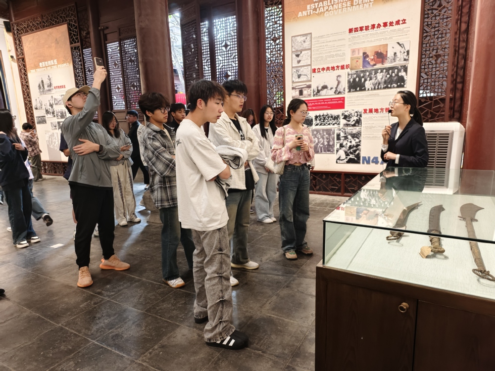 参观过程中,通过讲解员生动详细的介绍,大家了解到新四军第一支队司令员陈毅、傅秋涛等老一辈革命家在此指挥,建立以茅山为中心的抗战根据地的故事。同学们仔细聆听讲解员的讲解,注视着场馆内新四军浴血奋战时使用的武器和一张张记录革命先烈辉煌历史的照片,深刻感受到革命家为解放事业所做的伟大贡献和巨大牺牲,也被战士们勇往直前,顽强抗战的勇气和坚定力量所震撼。