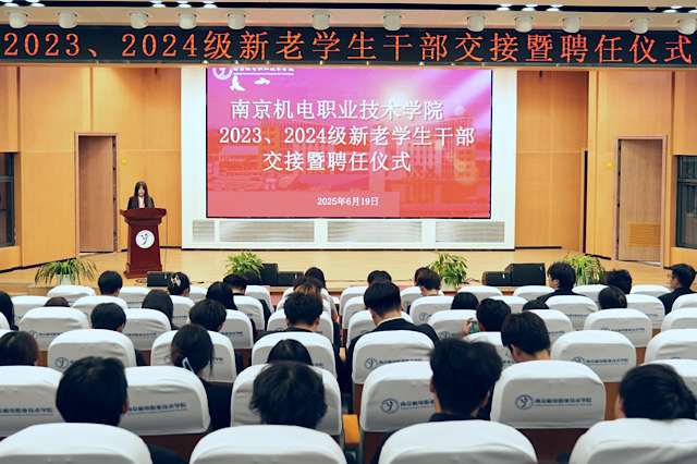 浪潮奔涌,激荡岁月华章;薪火相传,续写青春荣光。为深入贯彻党的二十大精神,扎实推进学生组织建设,推动团学工作创新发展,6月19日,南京机电职业技术学23级、24级新老学生干部交接暨聘任仪式在乐学楼102举行。学生工作处处长张宝中、校团委书记孙晓燕、大学生生活服务与管理中心主任张进宝、校团委指导老师张自仪与新老学生干部齐聚一堂,共同见证这场意义非凡的传承盛典,本次会议由孙小雅主持。