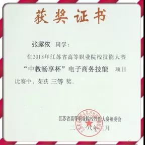 2017—2018学年:江苏省电子商务专业技能大赛三等奖;