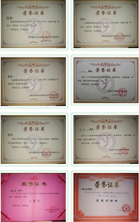 入学以来,荣获第三届全国大学生创新体验竞赛“创新价值”二等奖、2020年第二届全国《机械制图》万人联考江苏省二等奖、星空网页版第五届职业生涯规划大赛三等奖、2020江苏省机器人大赛F08室外安防巡逻组江苏省二等奖、院级优秀共青团员、军训优秀学员、2019-2020学年“校园十星”之“学习之星”、“管理之星”提名奖。