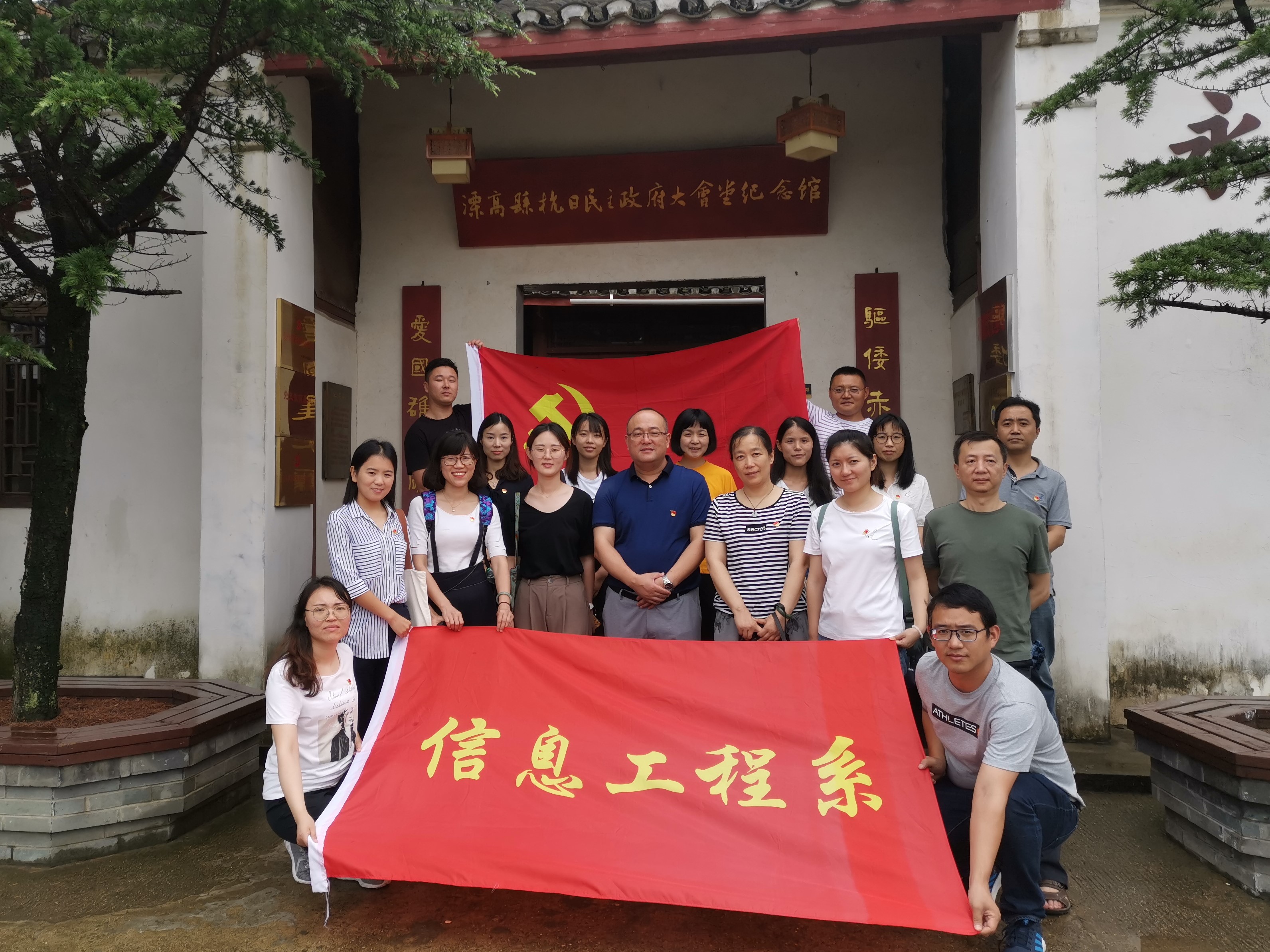 为庆祝中国共产党成立98周年,庆祝中华人民共和国成立70周年,扎实开展“不忘初心、牢记使命”主题教育,大力践行社会主义核心价值观,7月9日上午,星空网页版信息工程系党支部与人文社科系党支部组织党员老师前往高淳红色老区开展“不忘初心、牢记使命”主题党日活动。信息工程系党支部、人文社科系党支部一行共计35人参加了本次活动,学院驻点领导、院党委委员赵学洪同志以普通党员身份参加活动。