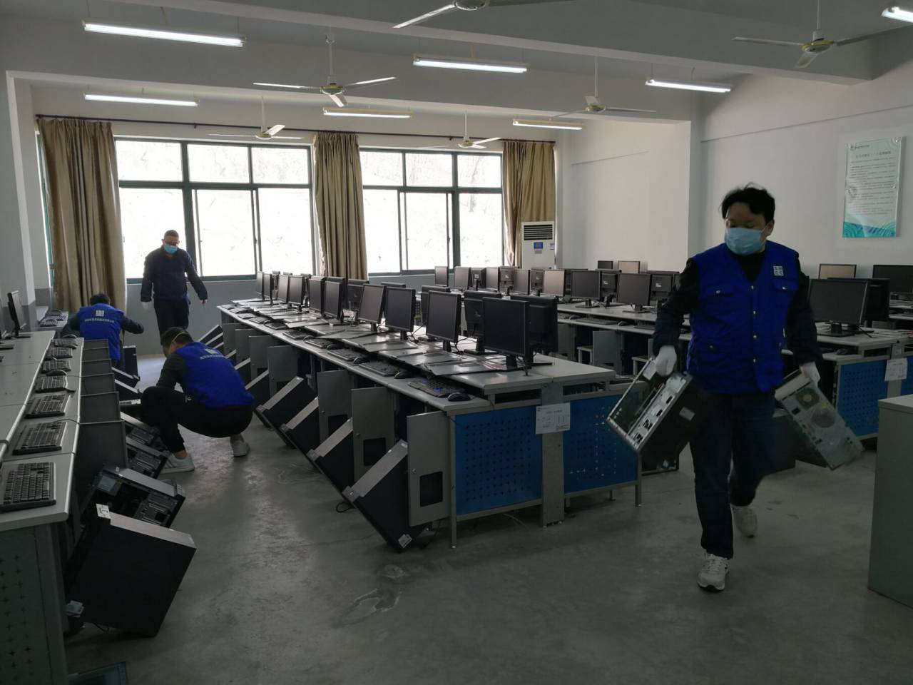 计算机设备由于静电作用极易吸附并聚集大量的灰尘,阻塞散热孔,从而造成内部温度过高,影响设备使用寿命,甚至引发火灾。为了实验计算机设备的正常运行,消除安全隐患,在时隔一年多后,再次组织专项除尘工作。