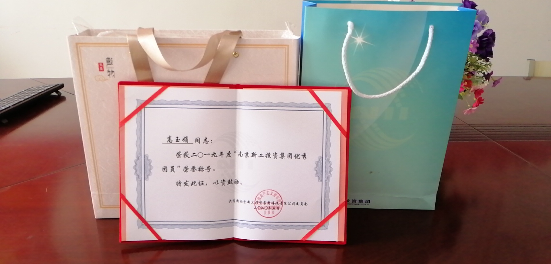 喜报:我系高玉娟荣获2019年度“南京新工投资集团优秀团员”称号