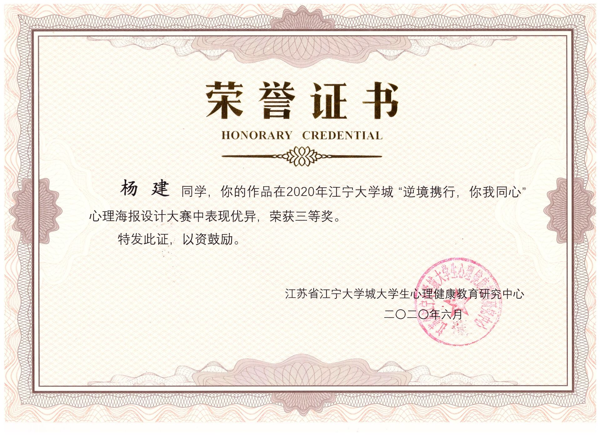 2020年4月我系心理气象站积极参加学院学生工作处大学生健康成长中心组织的江宁基地“逆境携行,你我同心”心理海报、心理漫画设计和心理征文比赛,经过学院筛选我系三份心理征文作品和一份心理海报被推送到江苏省大学生心理健康教育与研究中心(江宁基地)江宁大学城参与评选。