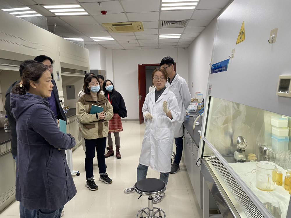 在企业负责人及技术专家带领下参观了分子生物学和化合物分析实验室、发酵工程实验室、分离提取实验室、微生物实验室和化学合成实验室。