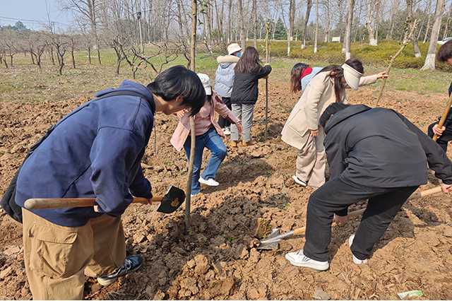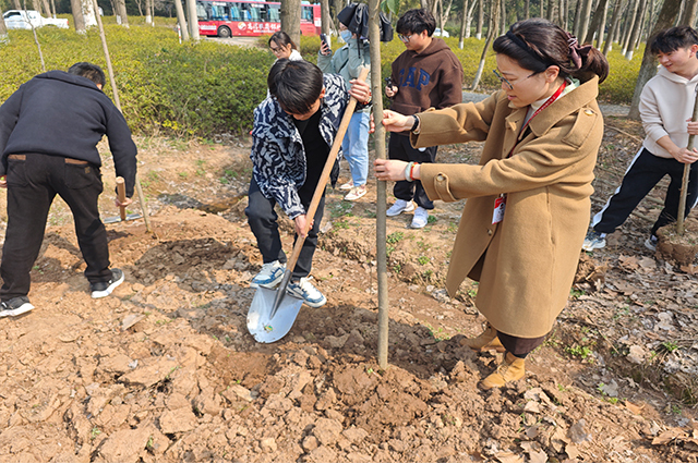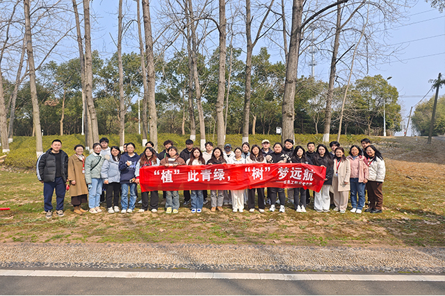 人间最美三月天,春花烂漫展新颜。春天带着绿色的气息向我们走来,春风吹绿了枝头上的嫩芽,吹绿了地上的小草,也吹动了同学们的热情。今年是中国第46个植树节,为弘扬中华传统文化,增强师生的环保意识和生态文明观念,信息工程系师生继续积极响应环保志愿行的号召,再次踏上征途,于3月12日下午前往高淳游子山开展以“植”此青绿,“树”梦远航为主题的党建带团建植树节活动。此次植树活动,由信息工程系党支部书记胡枫带队,学工干事郝麒、团总支书记沈歆岩、负责心理老师王林林、就业干事陈莉娟、全体辅导员、团学骨干和家庭困难学生共同参与。