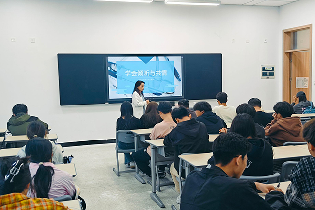 本次培训会由信息系心里气象站站长王林林老师主讲,王老师以生动的案例和深入浅出的讲解,引导心理委员们深入理解倾听与共情的重要性。会上,王老师强调了倾听不仅仅是用耳朵听,更是用心去感受、理解对方的过程,倾听不仅仅是听内容,更重要的是要理解与支持。心理委员们要学会在倾听中保持耐心和专注,不评判、不指责,做到价值中立,让倾诉者感受到被尊重和理解。