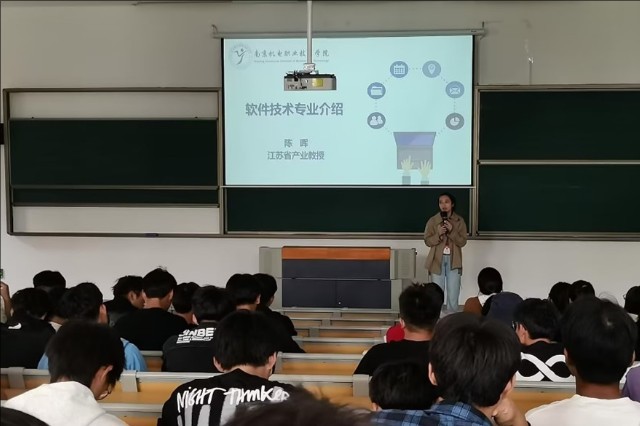 在专业介绍部分,陈老师不仅介绍了软件技术专业的课程设置、教学方法和实践环节,还分享了专业学习、生活、就业的点点滴滴,让新生们对即将开始的大学生活有了更加清晰的认识和规划。她鼓励新生们要勇于和善于探索未知,明确学习任务和发展方向,为未来的职业生涯打下坚实的基础。