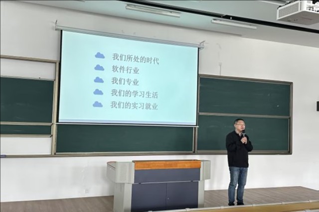 陈老师首先带领新生们穿梭于信息技术迅猛发展的时代背景之中,揭示了信息技术如何以全新的模式全面融入社会各个领域,从金融、物流、交通到文化、旅游等服务业,无一不受到其深刻影响。随着数字化转型的加速,软件技术已经成为各行各业不可或缺的核心竞争力,为新生们描绘了一幅充满机遇与挑战的未来图景。
