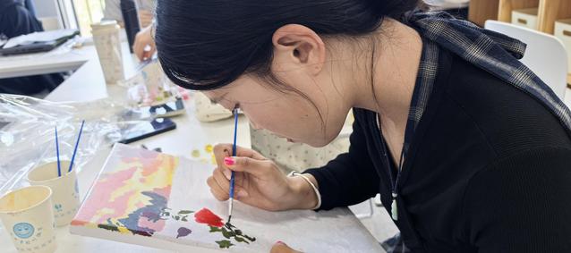 活动现场气氛轻松而温馨。同学们通过塑造不同的肌理效果,将内心的情感和想法具象化,尽情释放自我。在创作过程中,同学们互相交流、分享创作心得,不仅在艺术创作中找到了乐趣,更在互动中增进了彼此的了解和友谊。不少同学表示,在创作过程中,自己的注意力完全沉浸在绘画中,日常学习和生活带来的压力得到了极大的缓解。