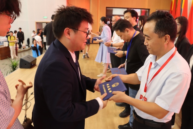 在颁发毕业证书的环节中,学校党委委员副校长赵学洪及系部领导班子亲自上台,为即将步入社会的学子们颁发这一象征着荣誉与责任的证书。毕业生们依次上台,从老师们手中接过属于自己的毕业证书,脸上洋溢着幸福的笑容和自豪的神情这不仅是对学业成果的认可,更象征着“匠心精神”的代际传递。