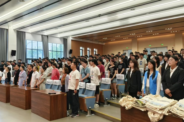 典礼现场,学生会主席团为毕业生歌,随着动人的旋律,会场内弥漫着不舍与憧憬交织的氛围,大屏幕播放了毕业生们在校期间的精彩瞬间和成长历程的视频。这些视频如同一部时光机,带领大家回顾了他们在校园里的点点滴滴,那些欢声笑语、汗水与泪水交织的日子历历在目,让人深切感受到他们成长的喜悦和变化。