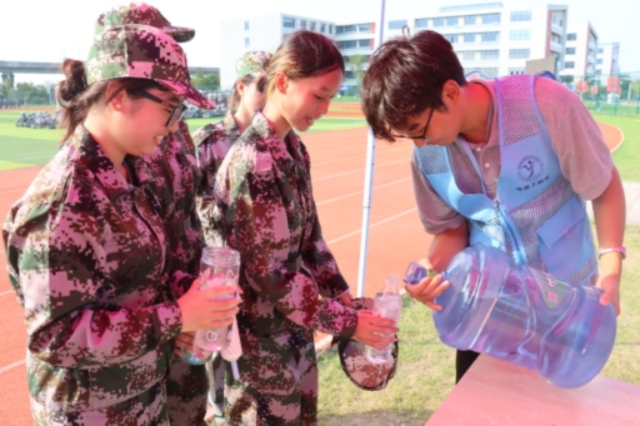 军训的严格训练离不开后勤保障的贴心支持。为缓解新生训练时的口渴与疲惫,信息工程系学生会自发组建了 “爱心供水队”,每天准时在后勤补给点集合,每当训练间隙,学生会的同学们便迅速行动,为新生们递上清凉的饮用水,同时主动询问大家的身体状况,用细致的服务传递着系部的温暖。