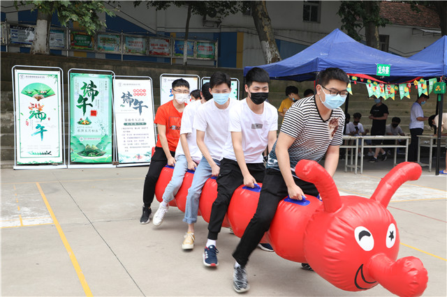 赛龙舟是端午节的习俗,也是端午节最重要的民俗活动之一。学院改良版“陆地龙舟赛”深受同学们喜爱,受到了一致好评。以“毛毛虫”游戏替代端午传统的龙舟比赛,五人一组,两组一赛,以吹哨为号,率先到达终点即为获胜。几轮比赛结束,不仅增强了同学们之间的交流互动,更是在锻炼身体的同时让学生们在游戏中感受传统节日的魅力,增强了当代大学生对传统文化的了解与关注。