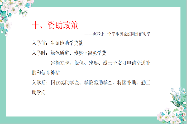提前掌握学生有关情况,多措并举,让资助更精准地帮扶家庭经济困难新生入学。每一步都渗透着学院和系部“一切为了学生,为了学生的一切,为了一切的学生”的宗旨,体现学院和系部“人性化服务,亲情化管理”的理念。坚决履行“不让一名学生因家庭经济困难而失学”的承诺,切实保障家庭经济困难学生共同享有人生出彩的机会,共同享有梦想成真的机会。