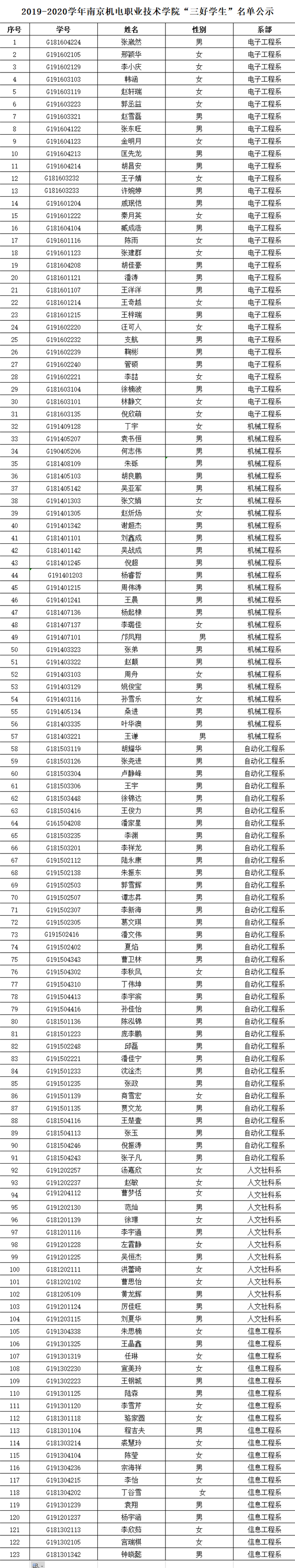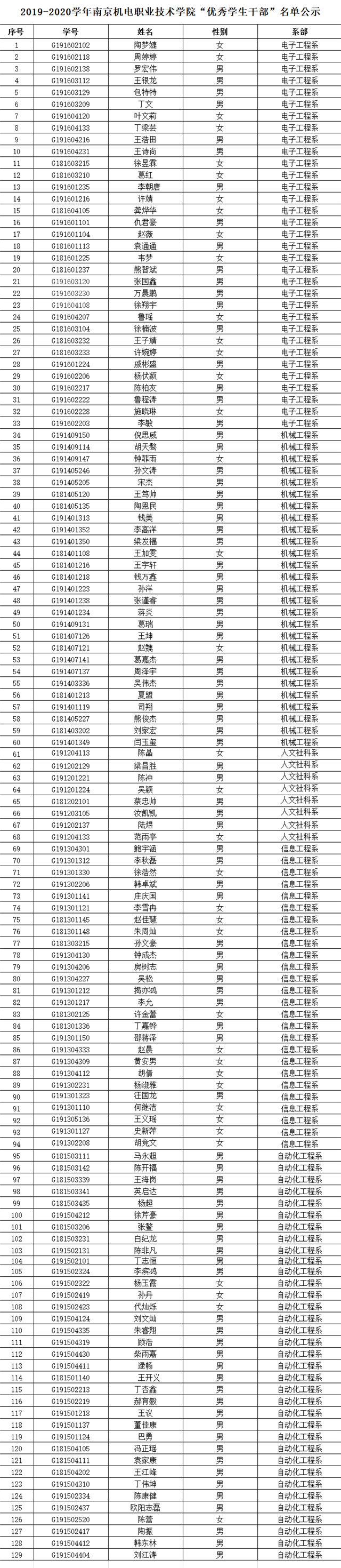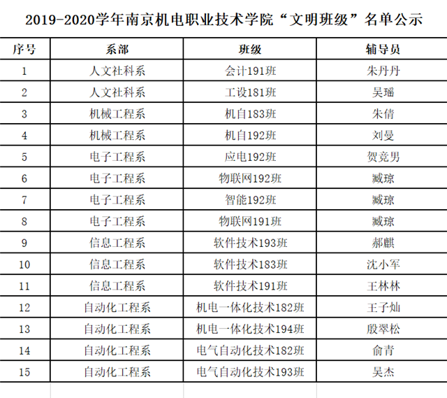 根据《星空网页版2019-2020学年三好学生、优秀学生干部、文明班级评选通知》规定,经学生本人申请、班级评议,系部审核推荐,学工处核准,学校审批,在公平、公正、公开的基础上,拟评选出以下个人和班级为2019-2020学年星空网页版“三好学生”、“优秀学生干部”、“文明班级”,现将名单公示如下。