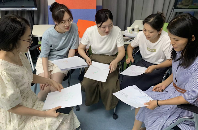 费俊峰老师着重介绍了格式塔心理疗法的理论和应用,他使用丰富多样的体验活动带领现场的老师们充分感受觉察力,具体讲解了“悬搁、描述、同等化、好奇“四个部分的现象学探索方法,帮助大家了解如何使用“分享观察”“分享感受”“现象学聚焦”等技术进行心理辅导。同时,引导老师们从整体视角出发,进入学生的现象场,了解学生行为背后的含义及互动交往中的模式,进而发展和培养学生的自我觉察能力和自我调节能力,达到心理助人的效果。