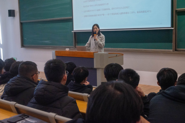 在世界第36个世界艾滋病日来临之际,为普及艾滋病防治知识,增强大学生预防艾滋病及自我保护意识,11月21日下午,校后勤处、学工处联合校医务室在善学楼开展了以“青春有爱 健康无‘艾’”为主题的艾滋病防治宣传讲座。讲座由白下医院芮琴主任主讲,200余名学生参加。