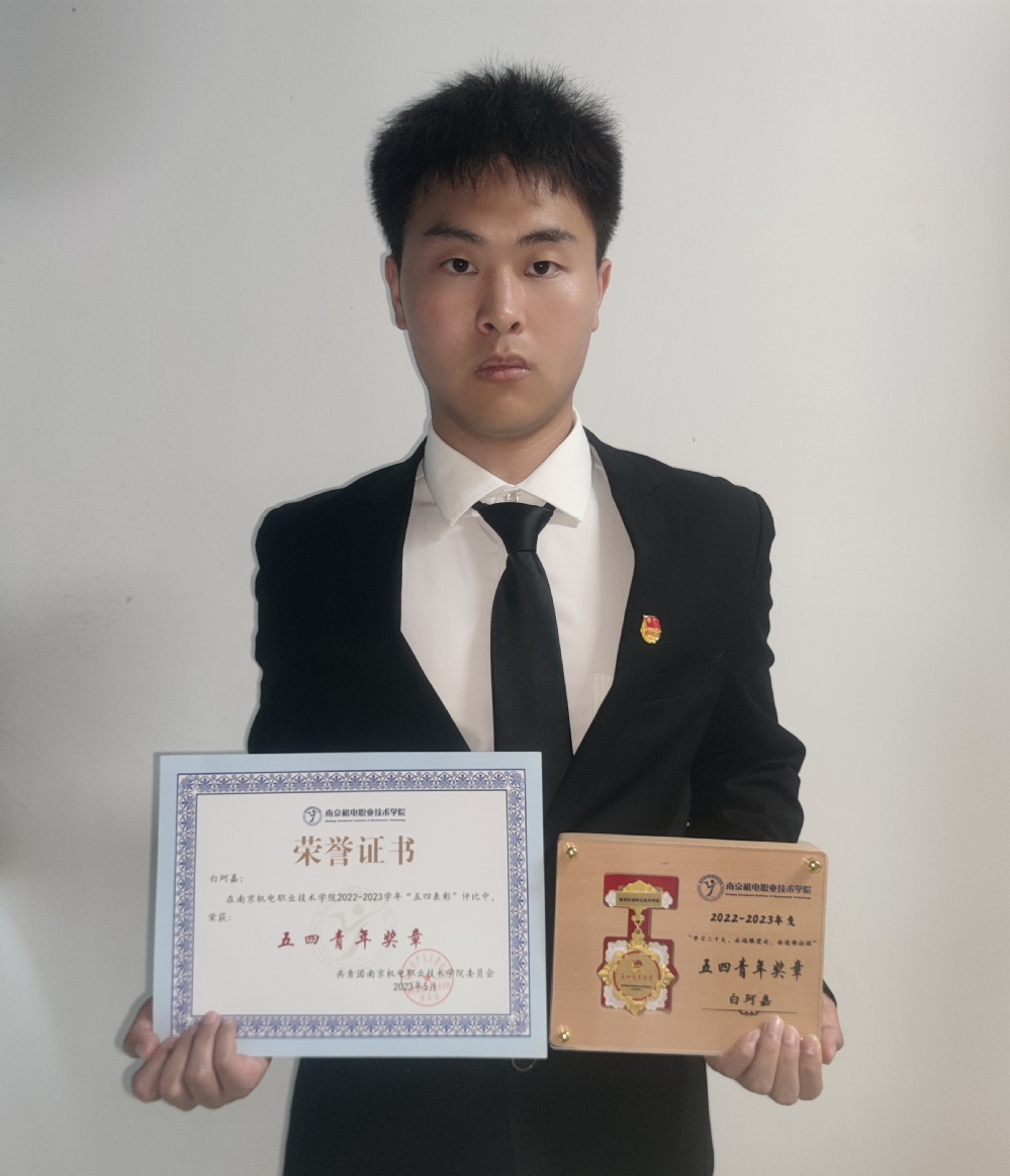 白珂嘉,男,汉族,共青团员,星空网页版自动化工程系机电一体化技术专业2021级专科生。曾任自动化工程系团总支学生副书记,机电一体化技术217班宣传委员,润泽苑119宿舍长。荣获了“国家奖学金”等3项国家级荣誉,“第六届江苏省大学生知识产权知识竞赛优秀奖”等2项省级荣誉,“五四青年奖章”等23项校级荣誉,“高压电工上岗证”等11项技能证书,实用新型专利受理1项。