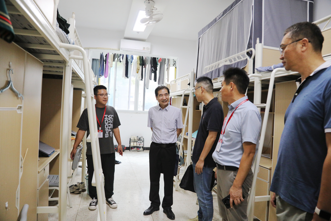 在国庆节假期即将来临之际,为了切实保障学生公寓在假期期间的安全稳定,全力营造一个安全和谐的节日氛围,2024年9月26日,南京机电集团常务副总经理唐俊带领集团安全办、资产管理部以及学校相关人员,对学生公寓进行了节前安全检查工作。次日,学校党委委员、副校长刁爱军,学生工作处处长助理殷凯等深入到学生宿舍,开展了一次全方位、多层次的安全综合检查。