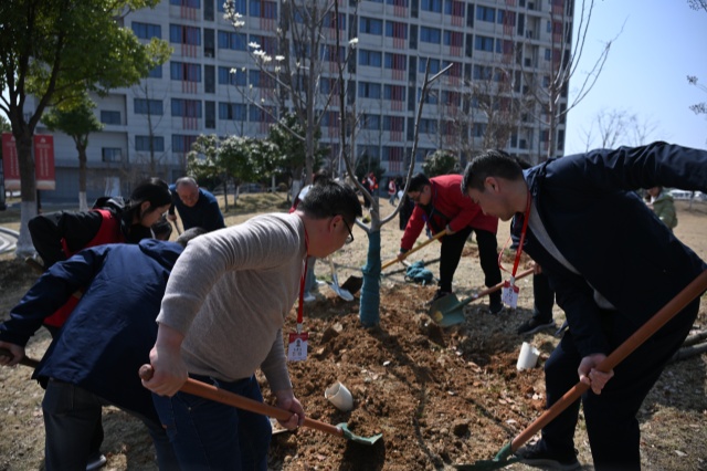 春回大地,万物复苏,植树添绿正当时。为深入贯彻习近平总书记关于生态文明建设的重要思想,让“绿水青山就是金山银山”的理念深入人心,激发师生植绿、护绿、爱绿的自觉行动,3月11日,机关二支部在校园开展了“党团同心增新绿,工群合力添新颜”植树节主题活动,在校园内外播撒绿色希望,为生态文明建设贡献力量。