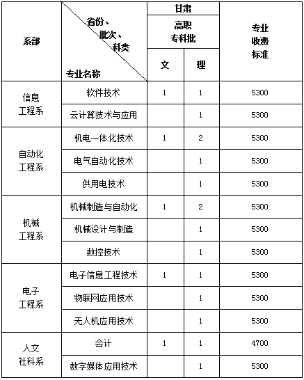 | 自动化工程系 | 机电一体化技术 | 甘肃 | 文科 | 零投档 | ||