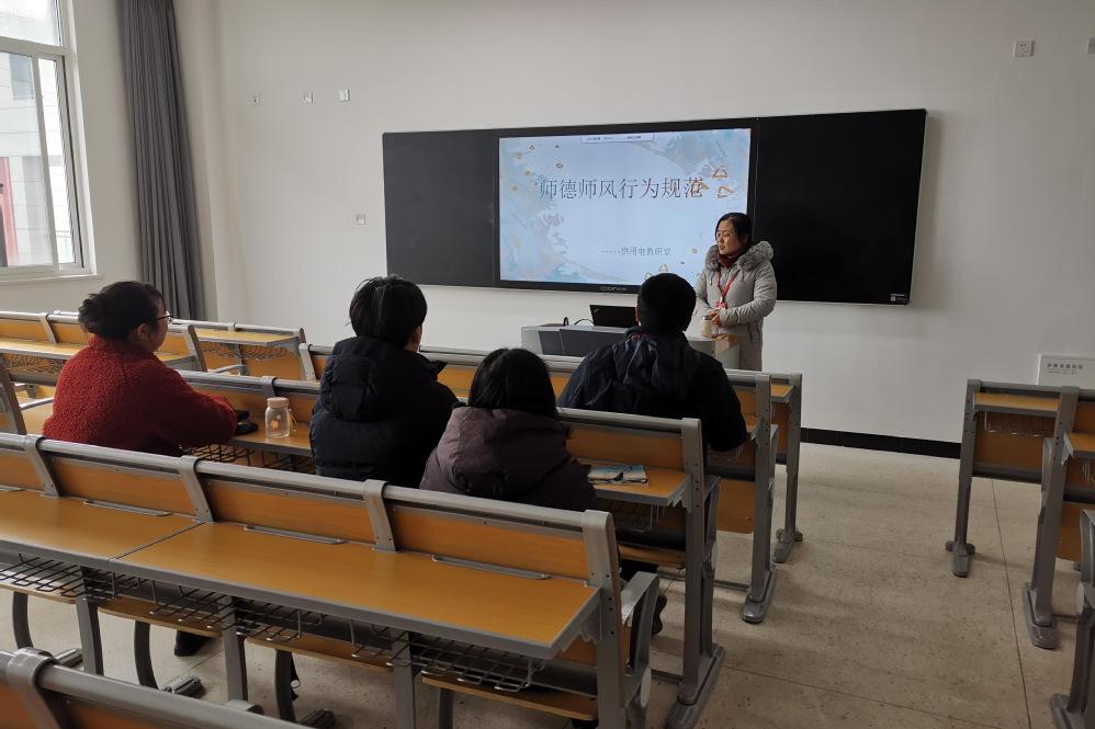 为深入贯彻习近平总书记在北京师范大学师生代表座谈会上的重要讲话精神,积极引导广大高校教师做有理想信念、有道德情操、有扎实学识、有仁爱之心的党和人民满意的好老师,大力加强和改进师德建设,努力培养造就一支师德高尚、业务精湛、结构合理、充满活力的高素质专业化的教师队伍,供用电技术教研室于2月23日举办了师德师风行为规范专题研讨会。