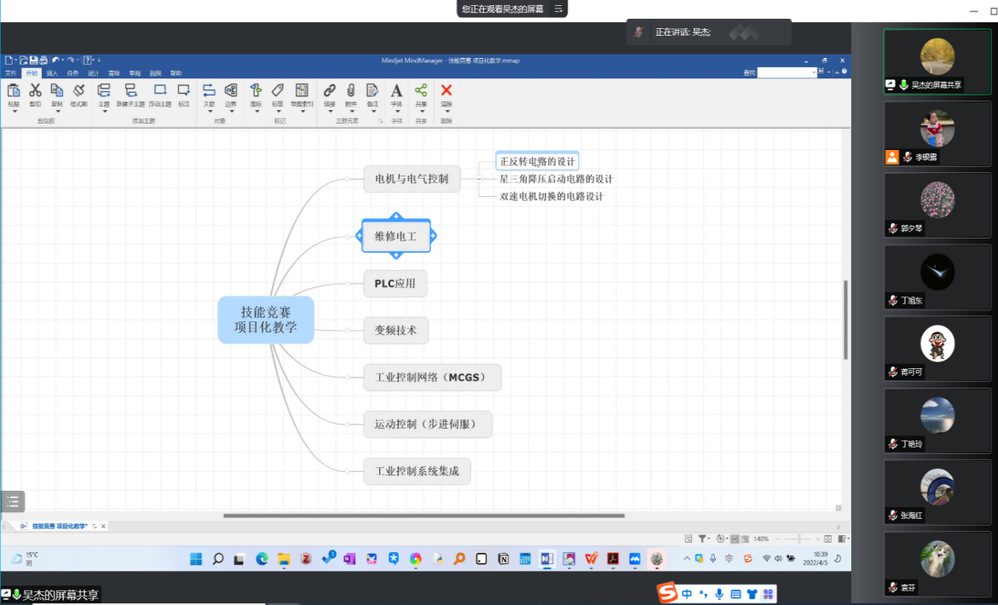 为推进职业教育的改革创新,并且将职业技能竞赛与项目化教学改革有机融合,同时也为了学院第七届冠盛杯三创大赛顺利开展,4月5日上午,电气自动化教研室线上开展了项目化教学及三创大赛动员研讨会,会议由李银露老师主持。