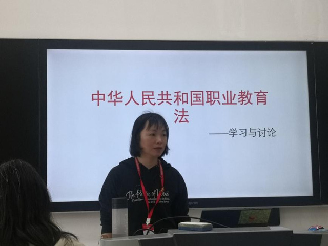 会议上,吴芬老师首先带领教研室全体教师对新修订的《中华人民共和国职业教育法》进行了学习,并组织观看了央视新闻对《中华人民共和国职业教育法》的解读。近年来国家高度重视职业教育的发展,出台了一系列有关大力发展职业教育的政策,此次职业教育法的修订不仅能够进一步完善职业教育体系,而且能够为职业教育改革提供坚实的法治保障。