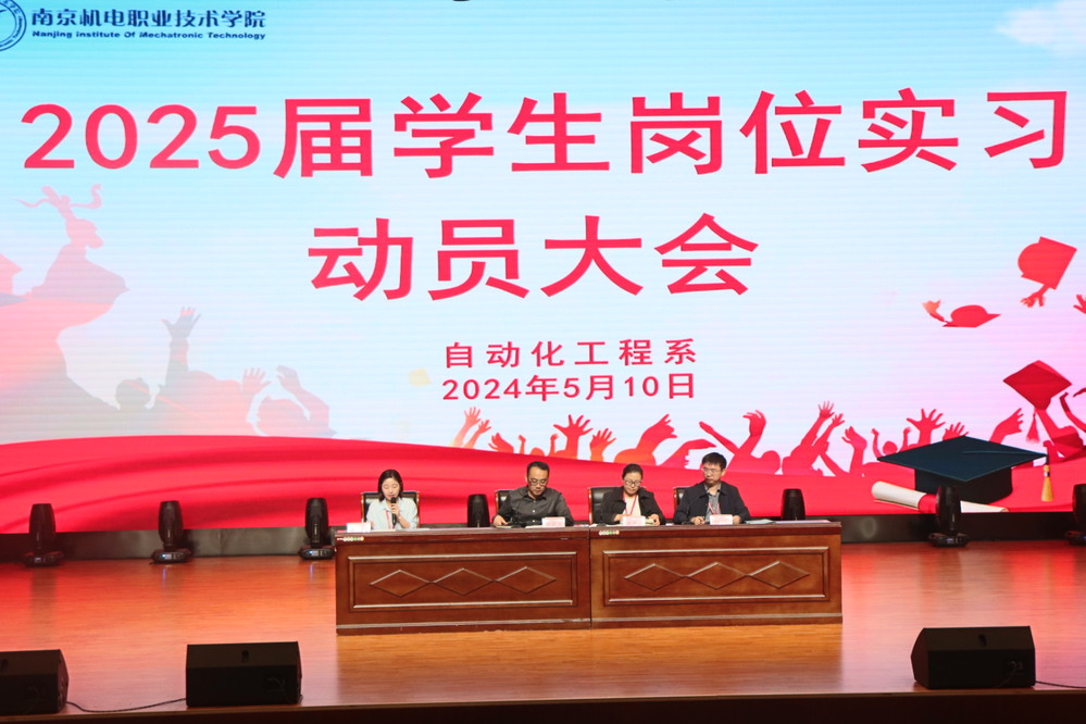 5月10日,自动化工程系在青春剧场召开2025届学生岗位实习动员大会,系主任张海红、党支部副书记杨军、副主任顾晟吉出席会议,2025届辅导员和全体2025届学生共七百余人参加了动员会,大会由系就业干事俞青主持。