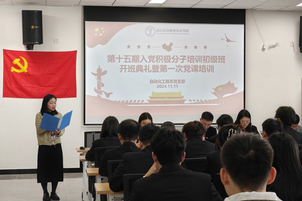 11月11日,自动化工程系第十五期入党积极分子初级班开班仪式暨第一堂党课培训在敏行楼401举行。自动化工程系党支部全体支委、第十五期入党积极分子初级班全体学员参加开班仪式。开班仪式由党支部组织委员俞青主持。