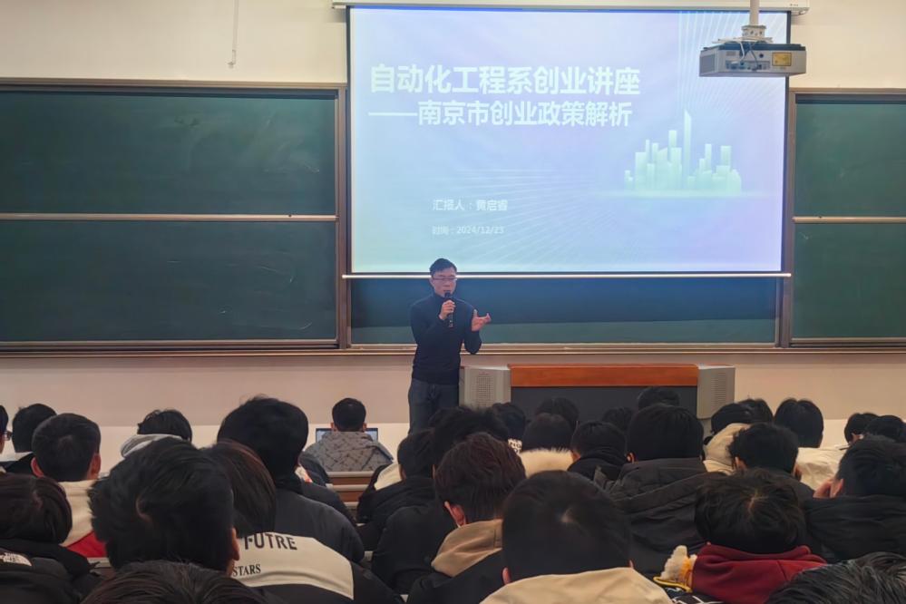 12月23日,自动化工程系成功举办《南京市创业政策解析》主题创业讲座活动。南京高职园管委会综合发展服务中心黄启睿向自动化工程系2024级学生解读创业政策。本次讲座旨在激发学生对创新创业的热情,提升他们的创业技能,吸引了众多怀揣创业梦想的学生积极参与。