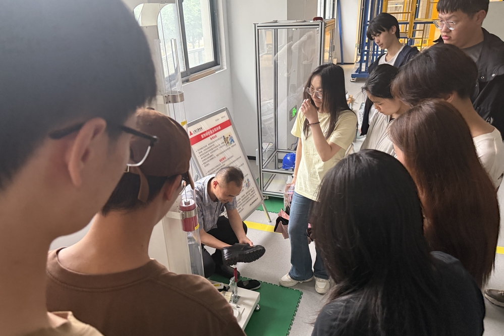 在安全体感实训环节,学生们分组体验了重物砸击、皮带卷入、触电等多种安全体感装置。在每个装置体验区,都有工程师全程指导,他们结合装置模拟的风险场景,深入讲解危害原理与防护措施。学生们在沉浸式体验中,直观感受到安全隐患的潜在威胁,安全意识得到了极大提升。